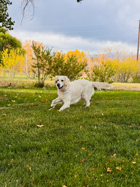 Yana is the most gentle soul and loves everyone. We got her from the top AKC golden retriever breeder in Ukraine, and her mommy, Navillis Hubba Bubba, has earned the titles JCH UA, JGrandCH UA, JCH MD, JGrandCH MD, CH UA, CH MD in Ukraine. Yana knows no enemy, takes no record of wrongs, and will actually smile the second she greets you. She's eager to please, love, protect, and follow. We get stopped everywhere we take her for her looks, but more importantly, they gravitate toward her calming energy. She is well-behaved, excellent with children and other animals, and has a gorgeous white coat. Yana is also a certified service animal and has earned her canine good citizen designation!